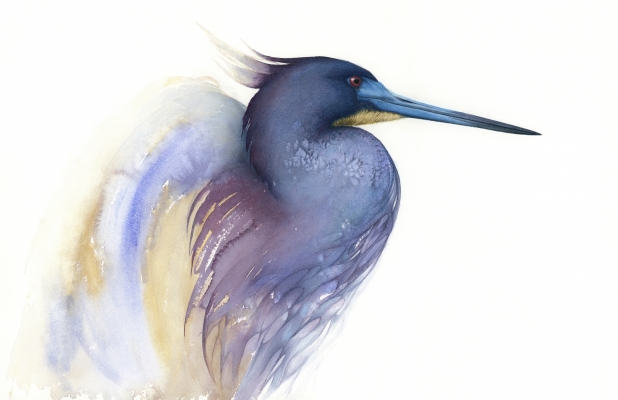 Painting is an impression of the Tricolor heron, an expression of the perception of their volatility and fragility. The combination of colors and forms of these amazing birds are also inspiration.