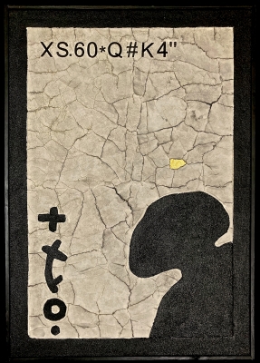 Una figura vagamente antropomorfa , indefinita, anonima, sola, campeggia su un fondo screpolato da aridi cretti: profonde crepe che segnano indelebilmente territori dell'anima e del quotidiano devastati dalla follia. Sequenze di lettere e numeri rimandano a ricordi nefasti del passato quando a molte persone non fu più concesso di avere un nome. Ma anche il presente è ormai pervaso da algoritmi che gestiscono la nostra vita stimolando una falsa "socialità", assottigliando pericolosamente il confine tra reale e virtuale e impedendo quel sano "ascolto interiore" del quale avremmo bisogno come dell'aria che respiriamo. Password, Blockchain, Criptomonete, tutto è gestito da numeri, dove il confine tra virtuosità e immoralità è molto labile. Questo lavoro vuole essere un invito a riempire la vuota figura di pensieri indipendenti, di significato, di senso profondo...di spiritualità.