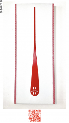 L’opera, UNHARTIST, è costituita da una colata di acrilico rosso tale da generare una lacrima, una lacrima di sangue, intensa e drammatica nel suo complesso. La sua forma ed estensione è stata manipolata dall’artista senza seguire prefissate delimitazioni spaziali, ne quantità prestabilite nell’utilizzo del materiale. Ma semplicemente seguendo la casualità della sua mano, della vita e di ciò che accade. Cosicché ogni opera ha una propria unicità, in questo caso a livello morfologico, così come le emozioni che un’opera o gli accadimenti della vita ingenerano nella persona. La parola, collocata al termine della goccia, è soggetta a variazione secondo la mente dell’artista. In questo caso “NOT ART” tende a rappresentare l’emozione critica dinnanzi ad un’opera. Un’emozione che può essere di diversa natura a seconda di chi guarda, la cui interpretazione è estremamente soggettiva.