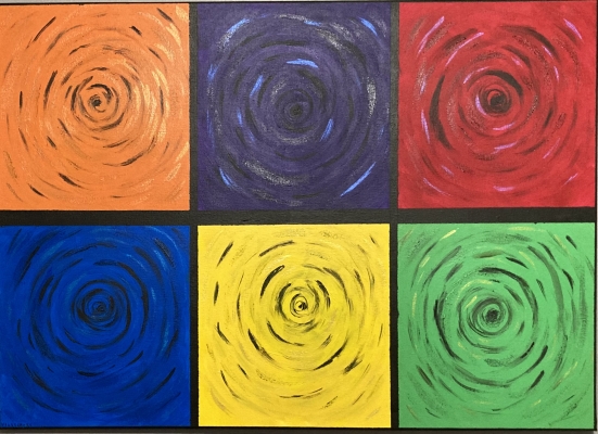 Septième tableau d’une série sur les tourbillons. Acrylique et lave sur toile