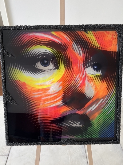 Neon und Schwarzlichtbild - steinrahmen und tiefe Elemente hinter der Acrylglasplatte