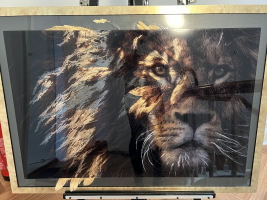 Löwe mit durchsichtigen Felder die durch Goldene Federn ergänzt werden