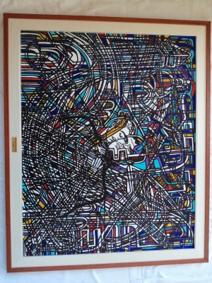 Pittura acrilica su tela da cm 80 h x 100 - Diabolik e Eva Kant a Venezia - Anno 2022.