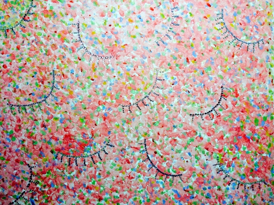 I believe dream can create a new opportunity and make impossible things to be possible. When you close the eyes and make a wish, it is full of imagenation and i will always feel happiness. Thus, I have used drop and circle brush to make the texture of my arcylic painting, applied the sparkle crystal to make those closed eyes on top of the painting.