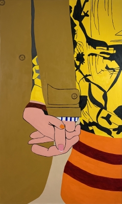My professor and I are holding hands in the painting. It makes me have a warm and happy feeling. I wanted to express cheerful mood using bright colors. The brushstrokes are pretty solid and not rough.