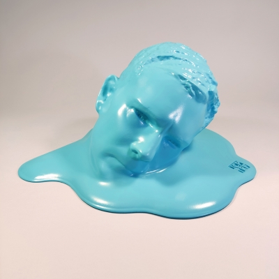L’opera vuole rappresentare il dissolvimento dell’umanità che, così come i ghiacciai, finirebbe se la temperatura dovesse alzarsi a livelli non sostenibili per il pianeta.