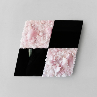 The icon is part a highly polished piano black finish - represents this utopic promise. The other half is made from the 'healing stone’ rose quartz. The use of the healing stone (which is purported to balance emotional health) represents the growing wellness industry which promises an alternative healing for the pains of our era.