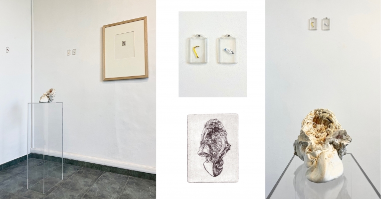 La conchiglia che emerge e che si pone come protagonista di questa installazione non è altro che plastica fusa dal mare, trovata, ripulita e resinata dopo una burrasca. La piccola acquaforte posta al centro di questo grande bianco evidenzia l’importanza di un oggetto apparentemente inutile, uno scarto che occupa però l’intero spazio, azzerando ogni atra distrazione; mentre i piccoli dipinti su plexiglass sono altre “conchiglie” che incorniciano e rafforzano l’intera opera facendo del bianco della parete la propria spiaggia. Il tentativo di estrapolare, senza altri elementi, delle forme autogenerate pone l’attenzione su ogni singolo oggetto, nel quale studiato attentamente è possibile individuare meccanismi propri della creazione.