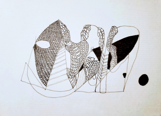 Free hand drawing on Japanese washi and ink. Intuitive and meditative approach.