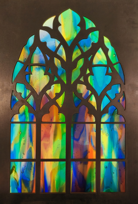 Mixing innovation and tradition, I emancipate myself from the traditional stained glass technique to inscribe myself in a contemporary approach. The architectural shape of a gothic cathedral window allows me to make the link between the two.