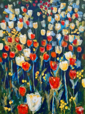 The Picturesque Tulip Bed, painting from the Ze-ze-Me series, acrylic on canvas, metalic colours partially used