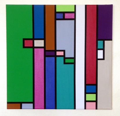 Sdraiato nello studio in cerca di relax, gli occhi impercettibilmente aperti quel tanto da riuscire a cogliere alcune sfumature di colore dei lavori appesi alle pareti, tanto basta alla mente per svuotarsi, ritagliandosi spazi di quegli stessi colori, in cui vagare liberamente e piacevolmente…