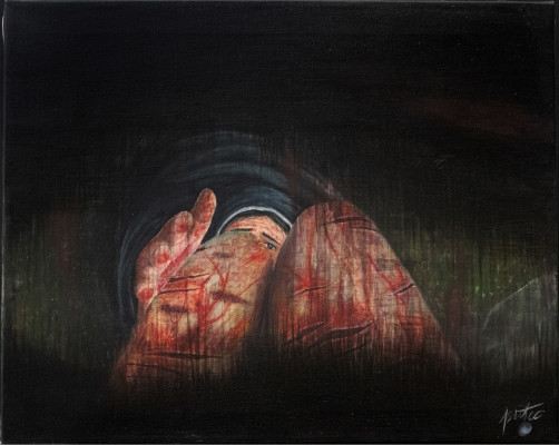 Un acrilico su tela che rappresenta l’ultimo sguardo tra Gesù e la madre, prima di morire nella vita terrena