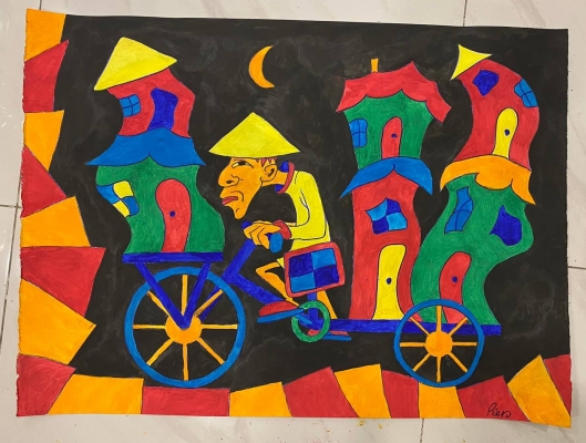"Life in Ho Chi MInh City", Watercolour on paper, January 2022, by Piers Midwinter. This is a ssample of life here in Vietnam