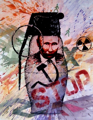 In Russia they make matryoshka with a portrait of the Dictator. My idea is to combine a hand bomb with a matryoshka doll. This is to show how dangerous the matryoshka virus is.
