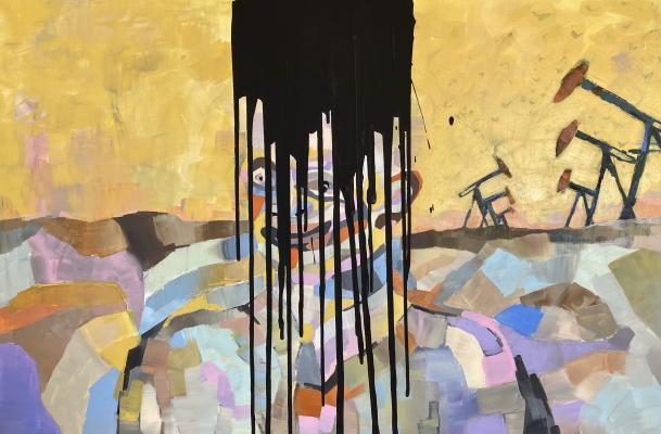 In my work, I wanted to visualize a portrait of the person, who puts all this multi-billion petrodollars in his wide trousers. Who are this «wonderful» people, who easily spent so much money for their golden toilets. All this brought me to the idea of my work «Oil head».