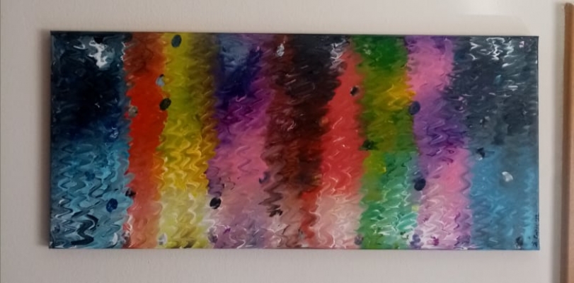 Akvarel na platnu .Slika može biti vodoravna i okomita -te tada je razmjer širine i visine obratno 40/90 ili 90 /40