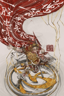 但这是基于我自己的理解,我看过太多的历史故事,很遗憾要么屠龙少年终成恶龙,要么英年早逝。我画到一半后被刺激了一下,心态变了,我想的是:谁说忠义之士只能死无葬身之地,不能因为所有人都犯错就把错误变成正确,我偏要杀出一条血路。所以打了一个改变效果的水印,枭王万代,千秋无期
