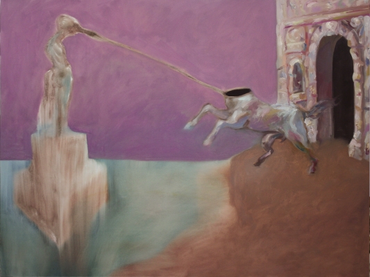 La pittura come racconto, o meglio come negazione di un racconto, ovvero una narrazione che cerca di sfuggirsi, di non dire nulla ma, di suggerire connessioni pretendendo di evocare luoghi semplificati e figure che appaiono come in un sogno, di cui non rimane che qualche suggestione, ma vivida.