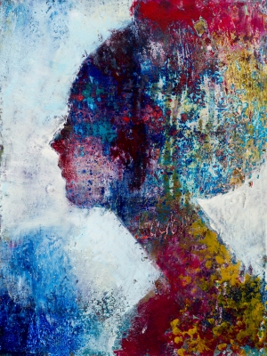 Painted with oil, cold wax, sand and pigment on board. Inspired by the early settlers to the west coast of Ireland who navigated by the stars and sun.