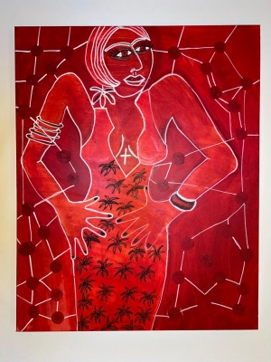 Picture expressing the difficulties of the female world in expressing theirs beliefs. The seductive red world that stifles in an unworthy manner the true essence of woman.
